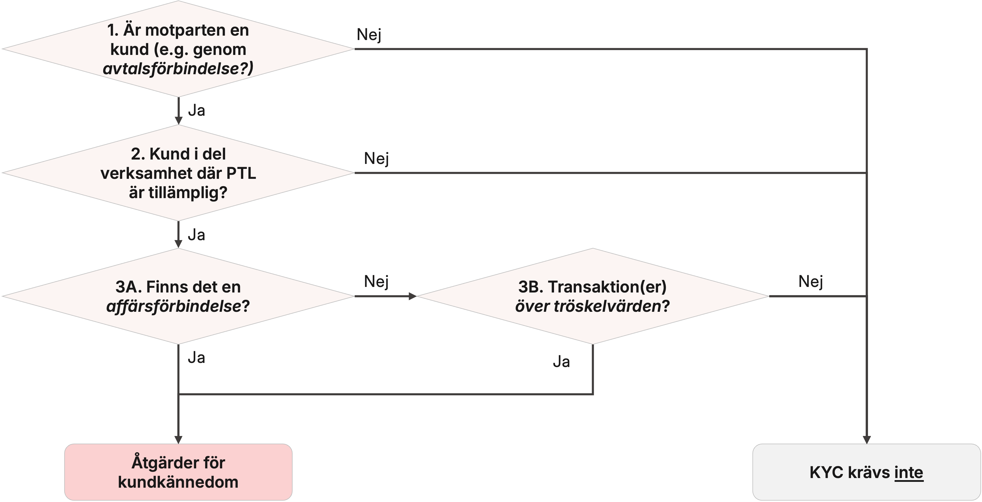 I normalfallet ska kundkännedomsåtgärder vidtas antingen (i) när enstaka transaktioner över tröskelvärde genomförs, eller (ii) när en affärsförbindelse etableras.